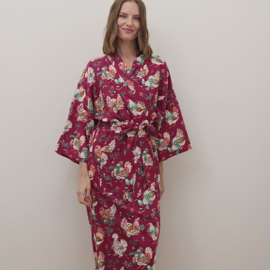 Holiday Hens - Lightweight Flannel Long Robe - Burgundy