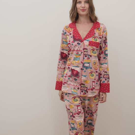 Channel the joy of preserving summer fruit in our Sweet Jams long pjs. This nostalgic flannel pajama set features hand-painted jam jars and berries on breathable, lightweight flannel. Our button-down pajama set includes a relaxed-fit top and comfy pants with pockets. Makes a sweet cotton sleepwear gift, perfect for canning season. Discover more joyful prints in our pajama sets, pajamas, and long sleep sets.