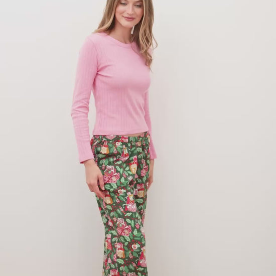 Ring in the season wearing these Holly Gifts pajama pants in Garland, featuring perfectly wrapped gifts and leafy sprigs. These wide-leg holiday PJ bottoms are crafted from breathable organic flannel for cozy warmth. With a comfortable mid-rise fit and deep pockets, these flannel Christmas pants are ready for holiday morning traditions. Complete your festive sleepwear collection with our flannel pajamas and pajama bottoms.