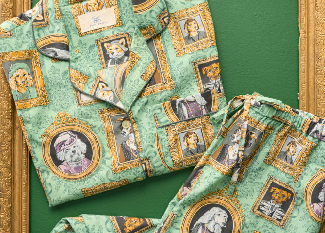 Celebrate Downton Abbey: The Grande Finale with a collection inspired by the story’s enduring charm. This exclusive pajama print pays homage to beloved characters, reimagined as a cast of distinguished dogs.