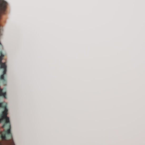 Bring festive sophistication to holiday dressing with our Magnolia midi dress in ink. This elegant bird print dress features a charming pheasant and fig motif on silky satin that drapes beautifully. The flowing silhouette includes long sleeves with romantic smocked cuffs, a knee-length hem, and pockets. A Christmas party dress made for holiday gatherings. Explore more dresses, holiday collection pieces, and midi dresses.