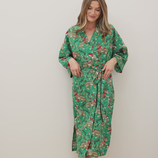 Very Merry Bagheera - Lightweight Flannel Long Robe - Mistletoe