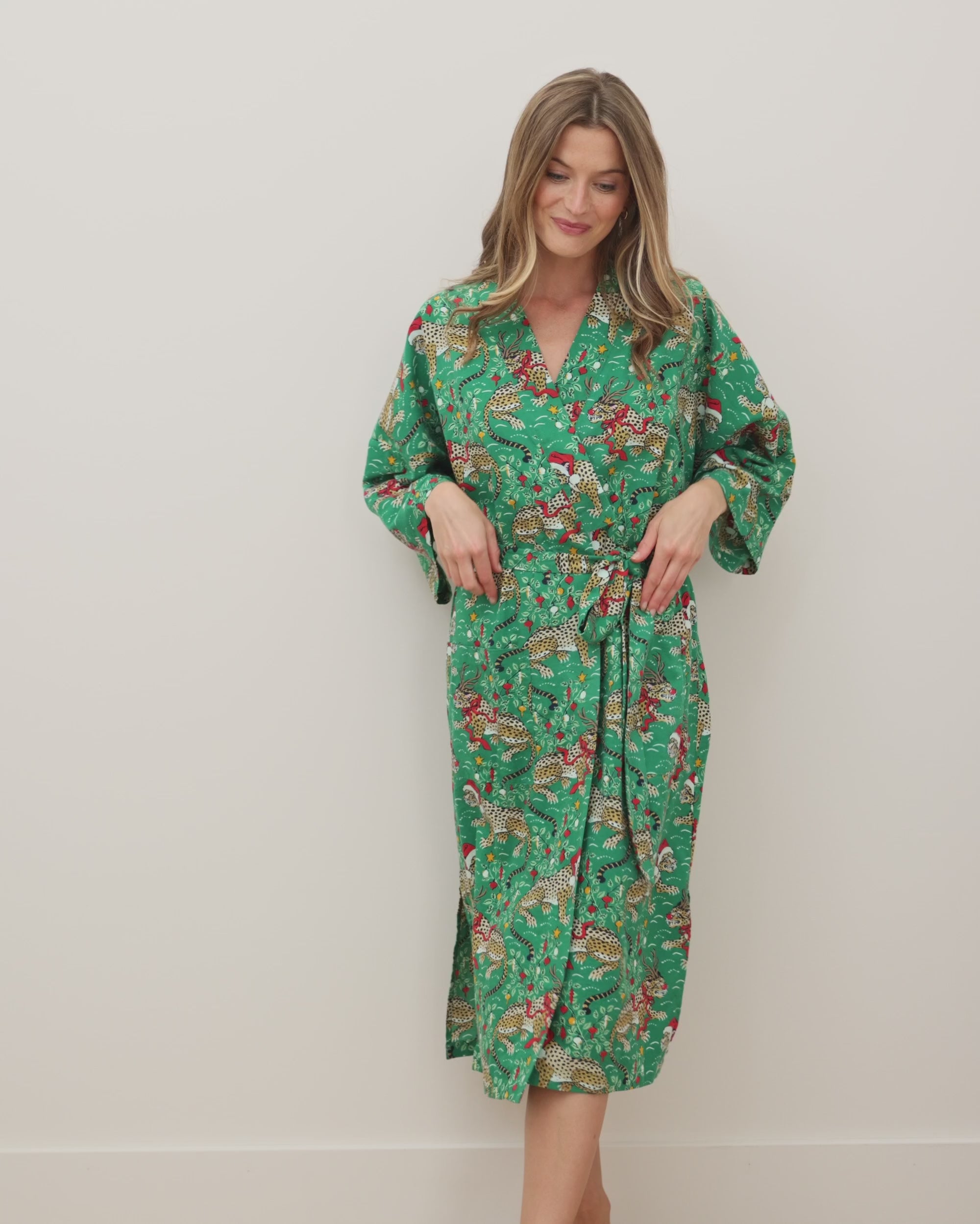 Lightweight Flannel Long Robe in Very Merry Bagheera